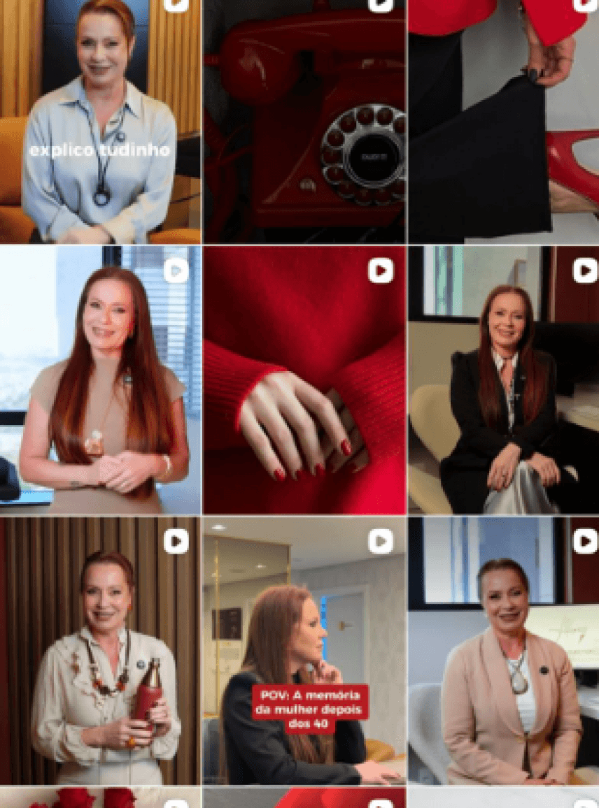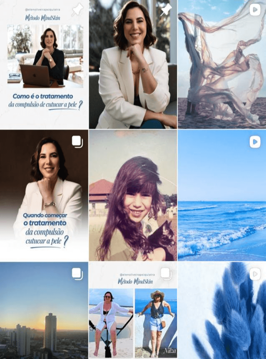 Elen Oliveira, Psiquiatra, 40k. Quando ela chegou na mentoria tinha medo de dar um salto muito grande no posicionamento, porque os looks e cenários estavam fora do seu círculo social da família dela e falou que com todo o apoio que teve ficou mais fácil de se posicionar. Quando ela chegou, feed era bem desalinhado com o posicionamento.